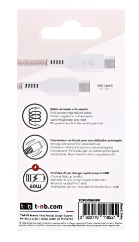 T'nB TCPDMAGPK. Snoerlengte: 1,5 m. Aansluiting 1: USB C, Aansluiting 2: USB C, USB-versie: USB 3.2 Gen 1 (3.1 Gen 1), Kleur van het product: Roze, Wit
