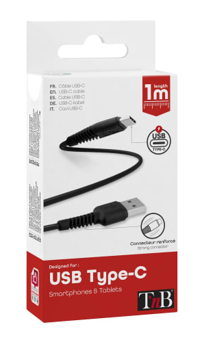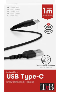T'nB TCUSB01BK. Snoerlengte: 1 m. Aansluiting 1: USB A, Aansluiting 2: USB C, Kleur van het product: Zwart