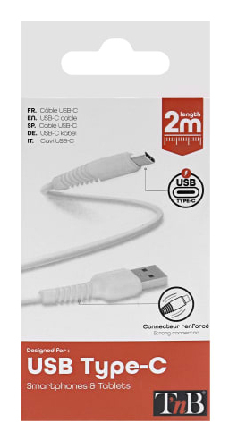 T'nB TCUSB02WH. Snoerlengte: 2 m. Aansluiting 1: USB C, Aansluiting 2: USB A, Kleur van het product: Wit