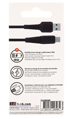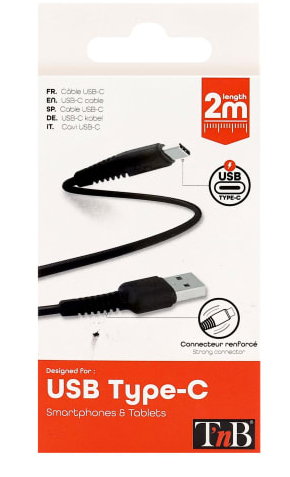 T'nB TCUSB02BK. Snoerlengte: 2 m. Aansluiting 1: USB C, Aansluiting 2: USB A, Kleur van het product: Zwart