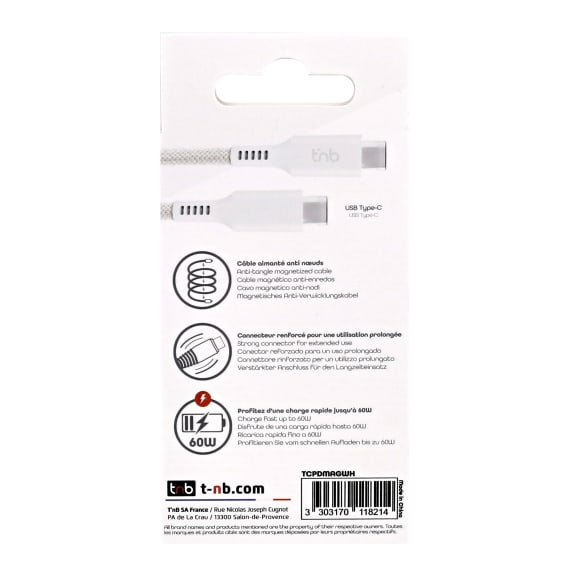 T'nB TCPDMAGWH. Snoerlengte: 1,5 m. Aansluiting 1: USB C, Aansluiting 2: USB C, Kleur van het product: Wit