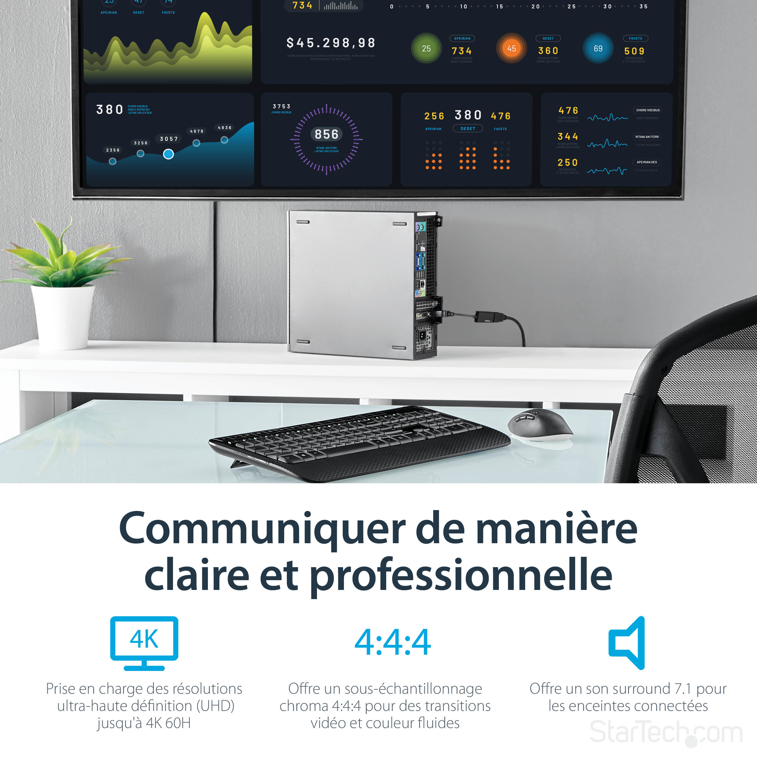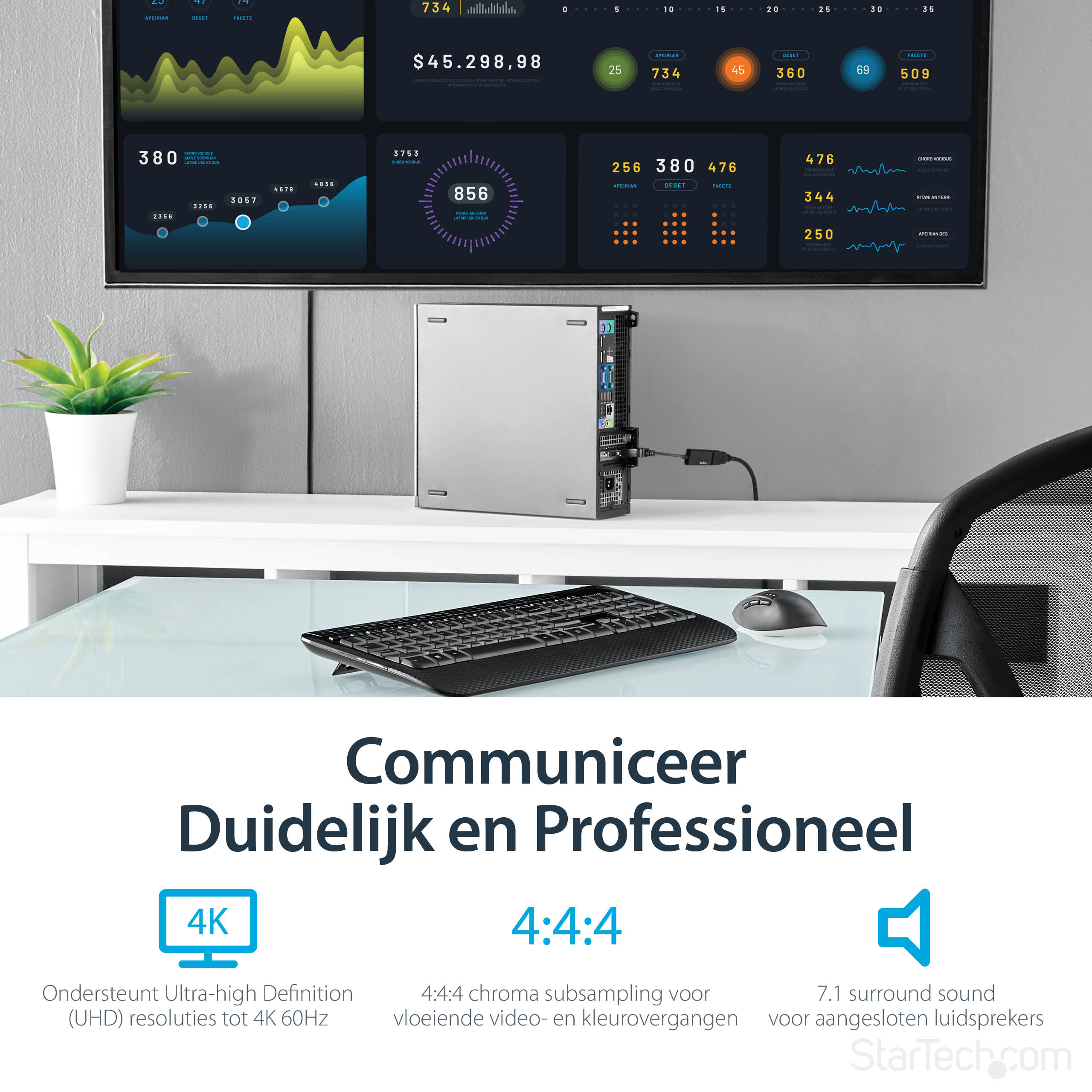 Sluit uw DP-computer aan op een HDMI-scherm met deze converter die UHD-resoluties tot 4K bij 60 Hz ondersteunt