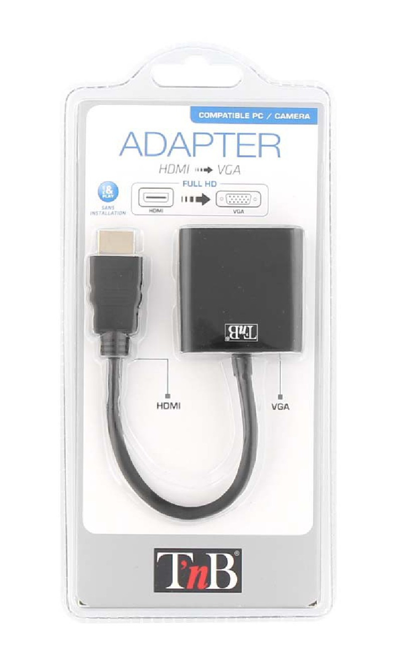 T'nB HDMIVGA. Aansluiting 1: VGA (D-Sub), Aansluiting 2: HDMI Type A (Standaard), Aansluiting 1 type: Mannelijk. Breedte verpakking: 220 mm, Diepte verpakking: 35 mm, Hoogte verpakking: 100 mm. Aantal per verpakking: 1 stuk(s)