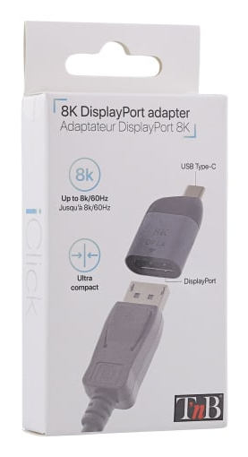 T'nB MINITCDP. Aansluiting 1: USB Type-C, Aansluiting 2: DisplayPort, Aansluiting 1 type: Mannelijk. Gewicht: 8 g, Breedte: 40 mm, Diepte: 10 mm. Breedte verpakking: 65 mm, Diepte verpakking: 20 mm, Hoogte verpakking: 135 mm. Aantal per verpakking: 1 stuk(s)