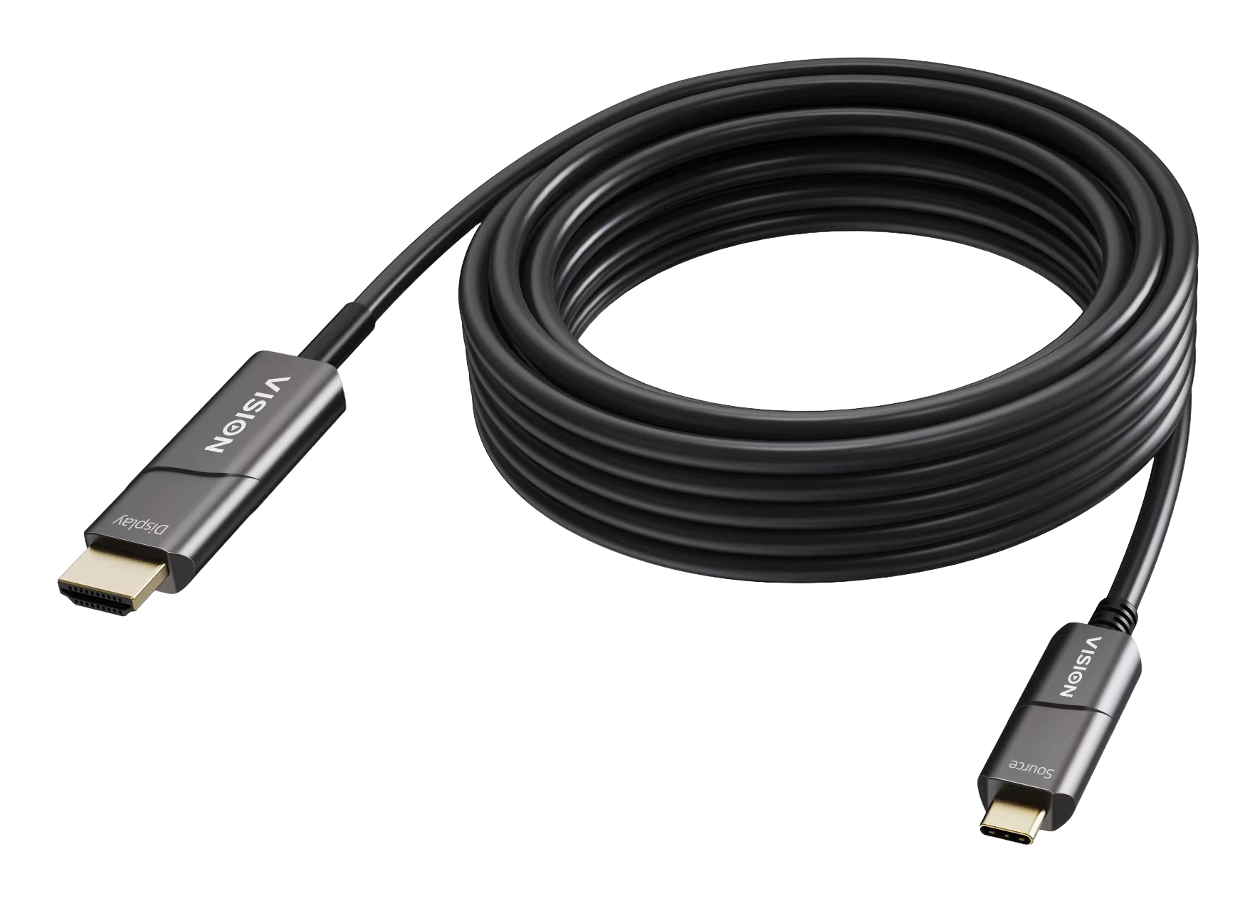 Vision TC 10MUSBCHDMI+/BL. Snoerlengte: 10 m, Aansluiting 1: USB Type-C, Aansluiting 2: HDMI Type A (Standaard). Certificaten van naleving: RoHS, CE, REACH. Diameter van de kabel: 4,5 mm, Gewicht: 390 g. Breedte verpakking: 180 mm, Diepte verpakking: 180 mm, Hoogte verpakking: 55 mm