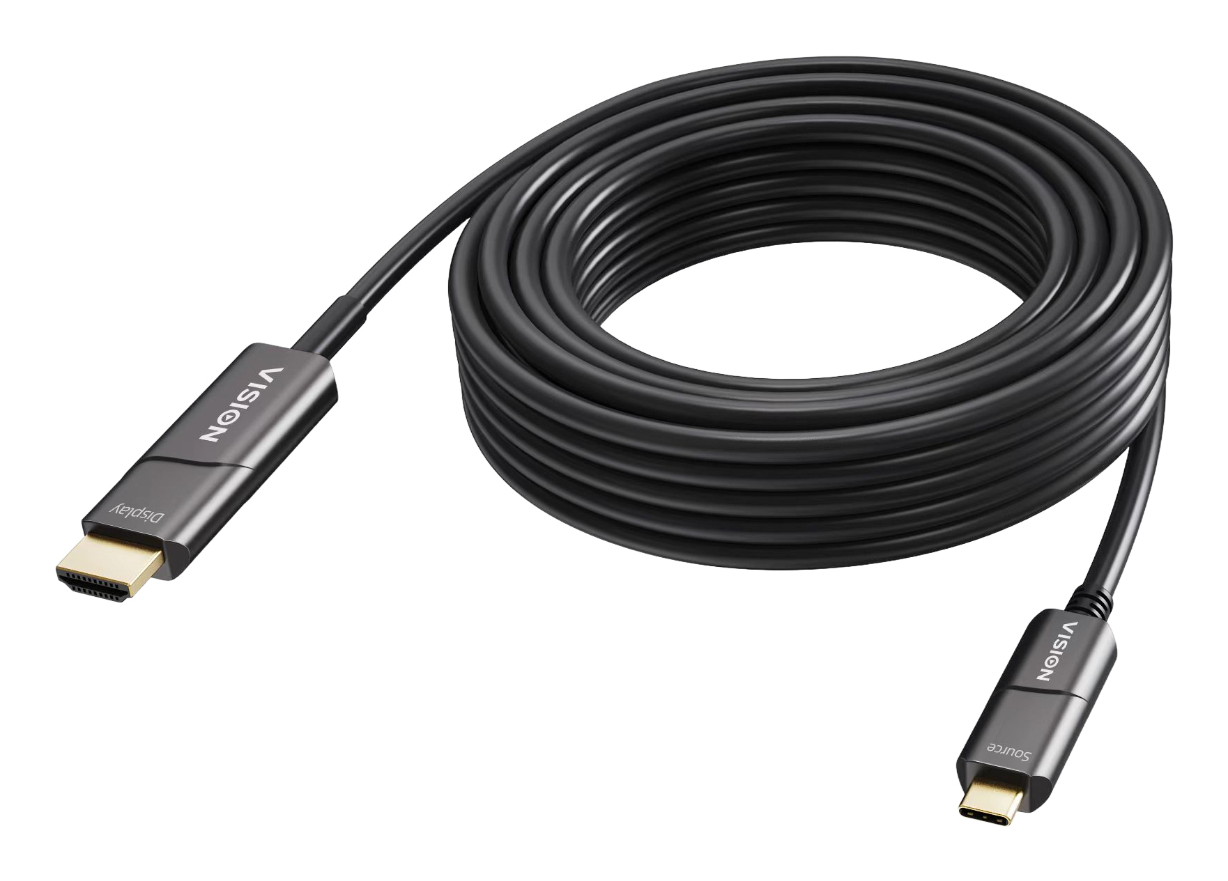 Vision TC 15MUSBCHDMI+/BL. Snoerlengte: 15 m, Aansluiting 1: USB Type-C, Aansluiting 2: HDMI Type A (Standaard). Certificaten van naleving: RoHS, CE, REACH. Diameter van de kabel: 4,5 mm, Gewicht: 490 g. Breedte verpakking: 180 mm, Diepte verpakking: 180 mm, Hoogte verpakking: 55 mm