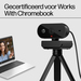 Doe onmiddellijk mee met het gesprek, terwijl je er geweldig uitziet en klinkt. Sluit gewoon deze breedbeeld FHD 1080p[3] all-in-one webcam aan en laat hem de rest doen, zodat jij je kunt concentreren op wat belangrijk is. Hij heeft ook automatische beeld- en lichtcorrectie, de certificering dat hij met Chromebook werkt[1,2], en een lenskap voor privacy.